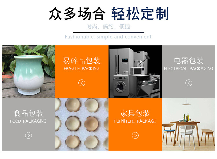 珍珠棉廣泛的應用范圍,使他在包裝行業地位越來越高,瓷器運輸,電器機械運輸,食品包裝運輸,家具包裝運輸等等。